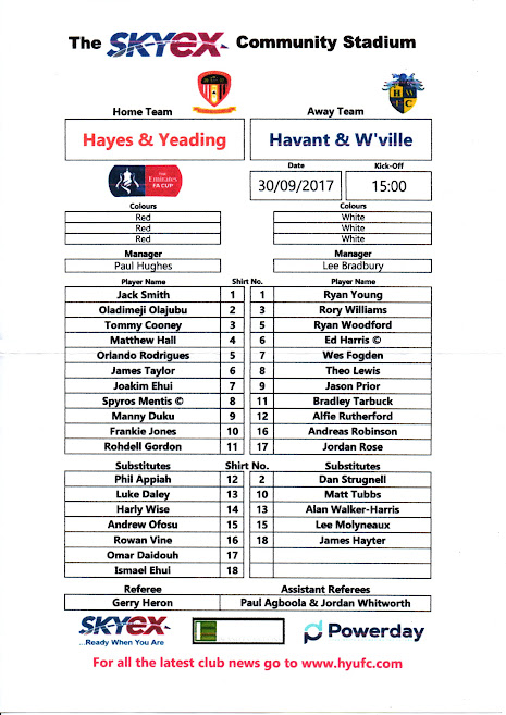 Head to Head (Hayes and Yeading United)