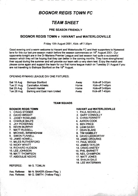Choose a season to view Havant and Waterlooville Programme's