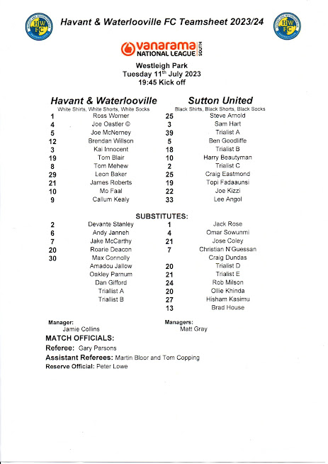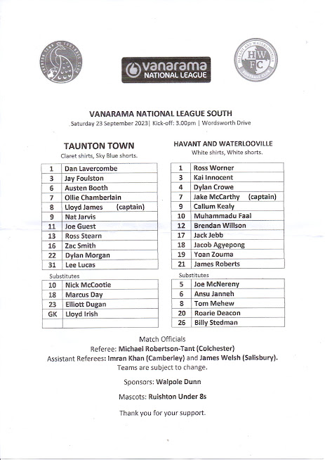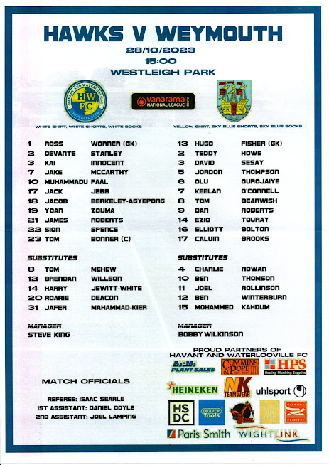 Choose a season to view Havant and Waterlooville Programme's
